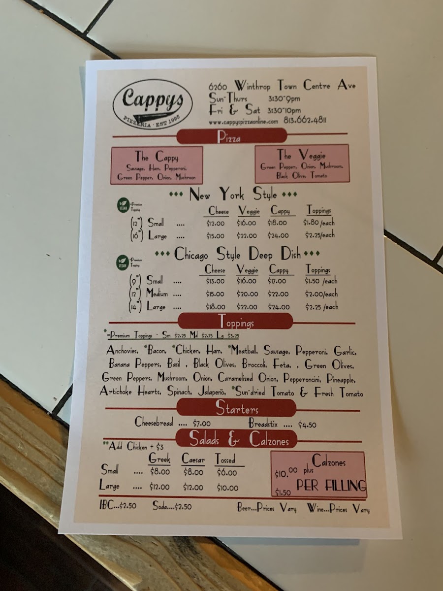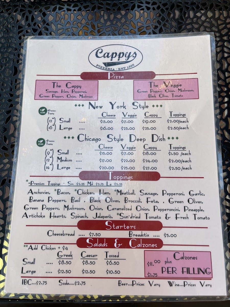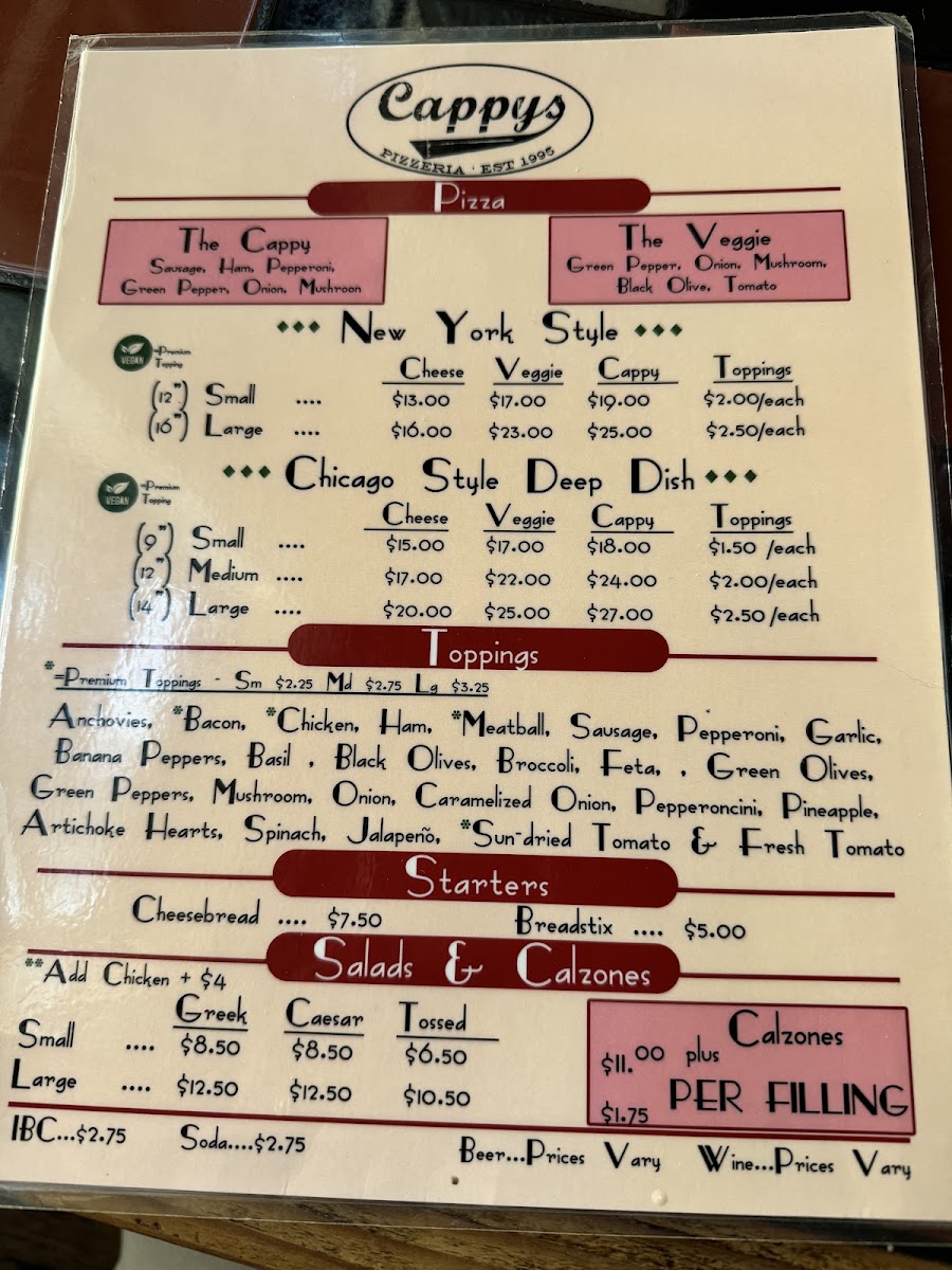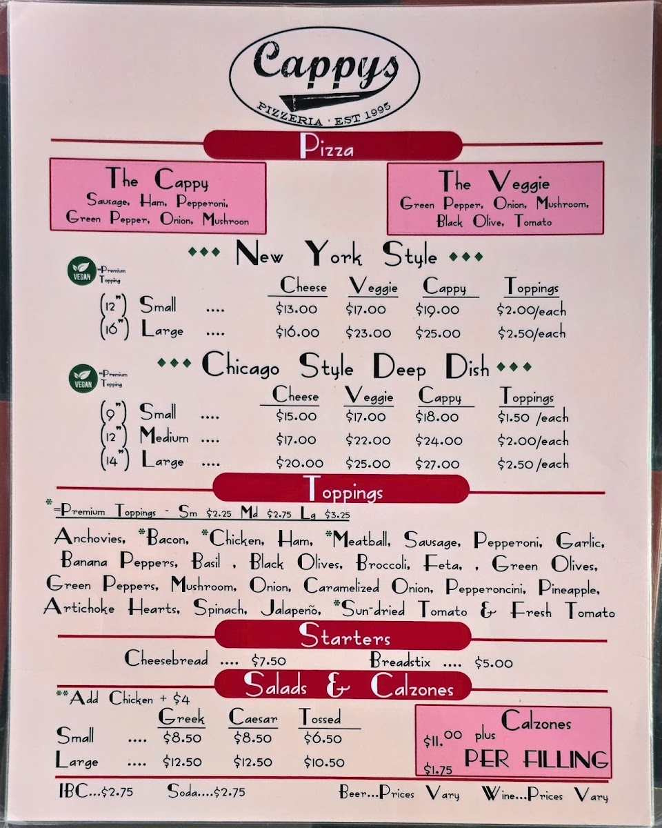 Cappy's Pizza Menu